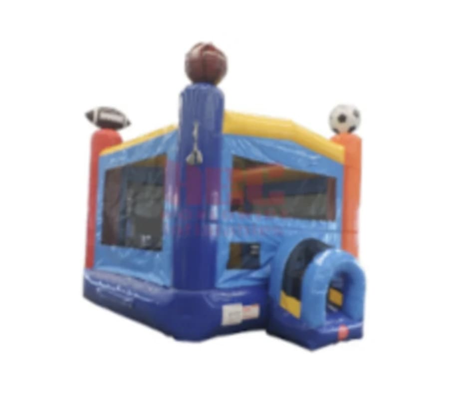 With vibrant colors and exciting sports-themed graphics, this bounce house captures the essence of soccer, basketball, baseball, and football. It creates a dynamic environment that sparks the imagination and encourages active play. Whether you're hosting a birthday party, a neighborhood gathering, or simply want to keep your little ones entertained, this bounce house is the perfect addition to any outdoor event.