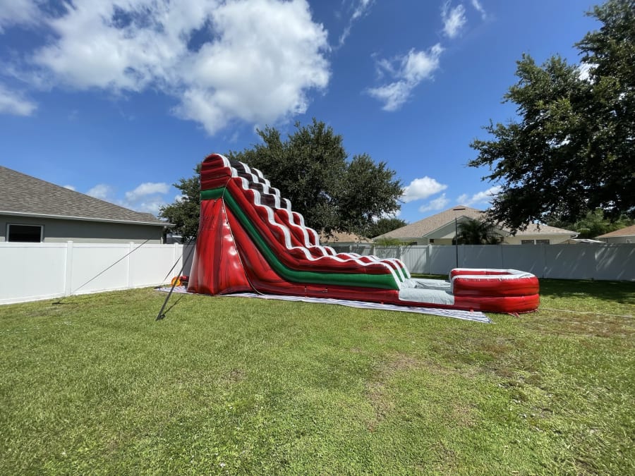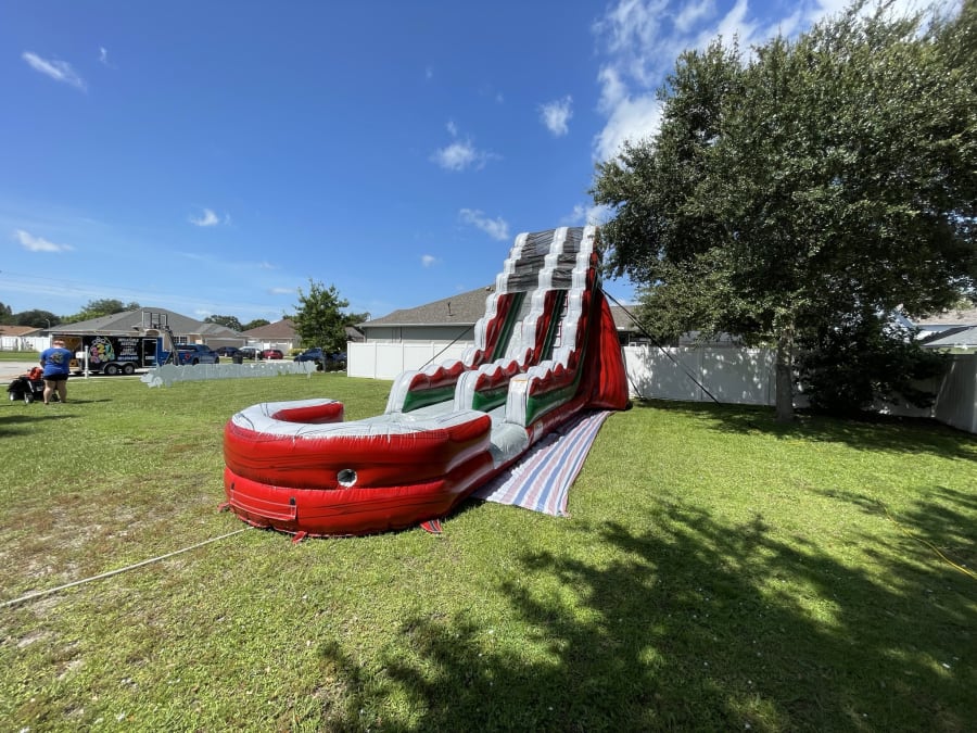 The 21-foot tall Red Rapid Water Slide is a striking addition to any outdoor event! The durable material and convenient drainage system ensure a safe and clean experience, while the easy setup process makes it a hassle-free rental option. Whether you're planning a backyard pool party, a community event, or a corporate function, the 21-foot tall Red Rapid Water Slide is sure to provide hours of excitement and entertainment. Book yours today and experience the thrill of a high-speed ride!
