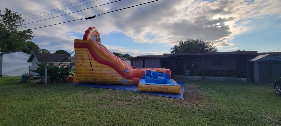 The Rippling Tide Water Slide is the perfect addition to any party or outdoor event! This exciting water slide features a long, twisting design that is sure to provide hours of fun for kids and adults alike. Whether you're looking to add some excitement to a backyard party or want to keep your guests entertained at a large event, the Rippling Tide Water Slide is the perfect solution. It's easy to set up and is sure to provide hours of thrilling fun!